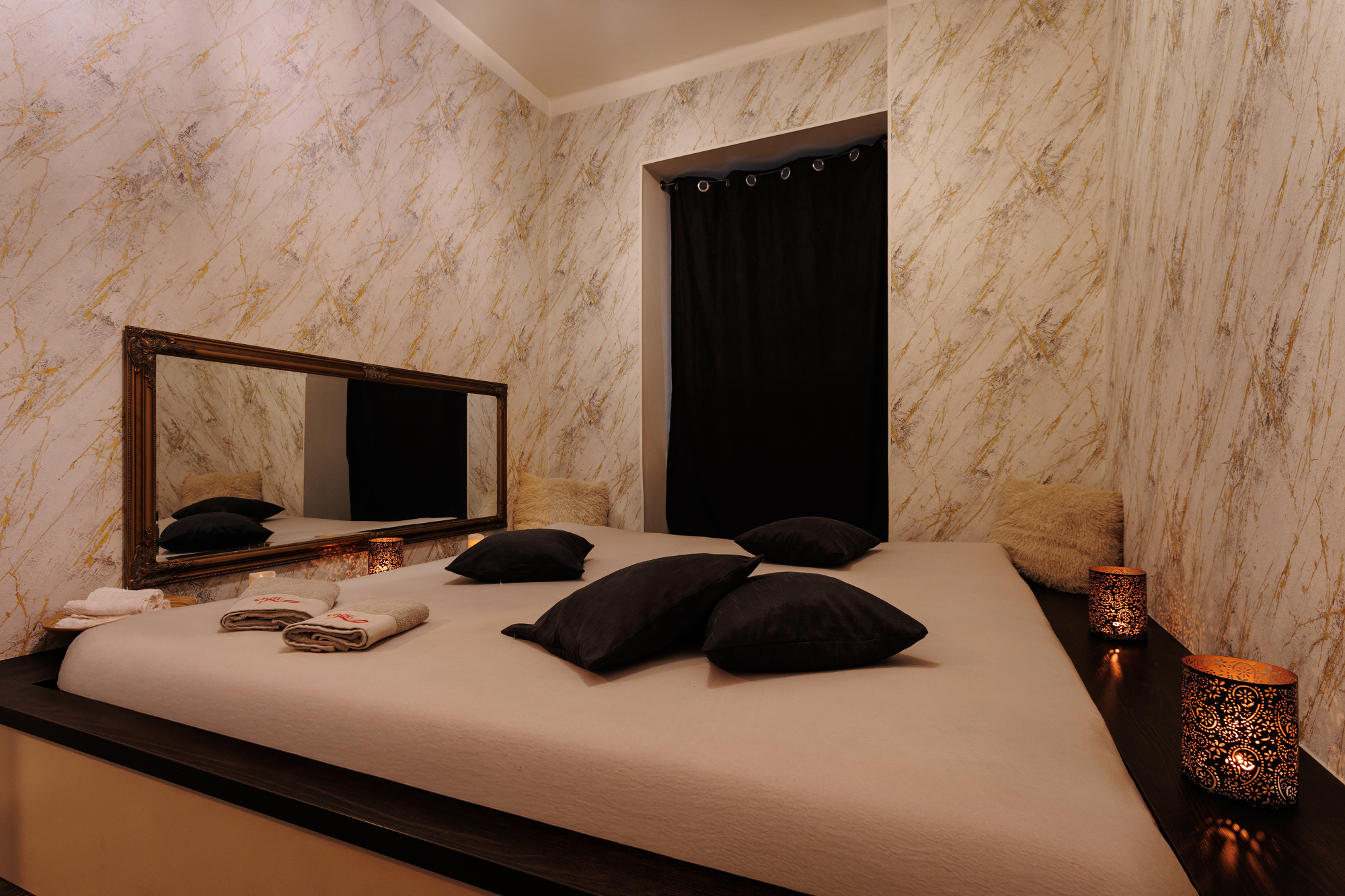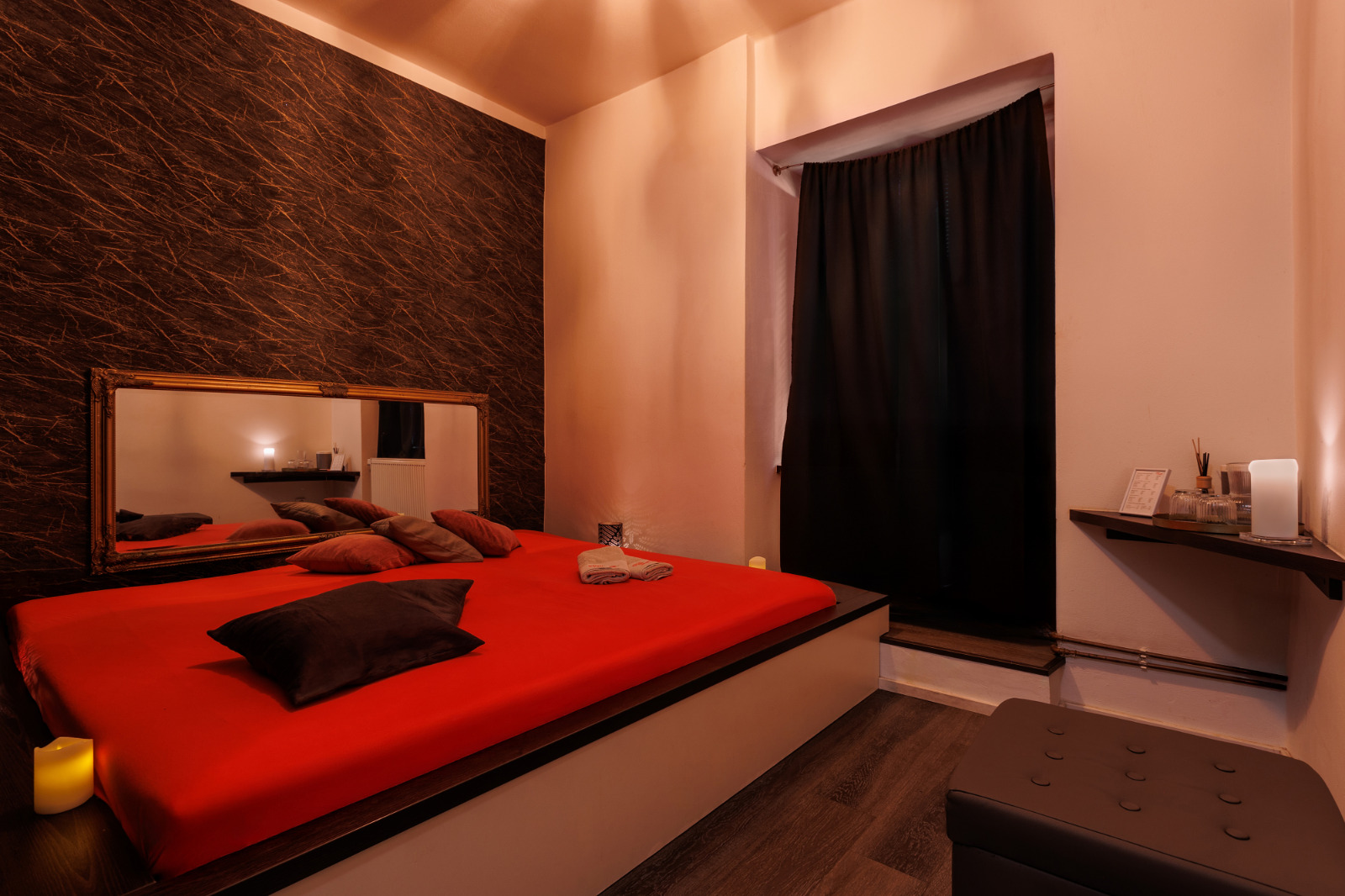 - Intimní osvětlení a zrcadla podél zdí: Nastavení intenzity světel, dle vlastní potřeby. Svíčky a aromata kolem Vás. Zrcadla podél postelí, kde se můžete kochat odrazem svým nebo protějšku.